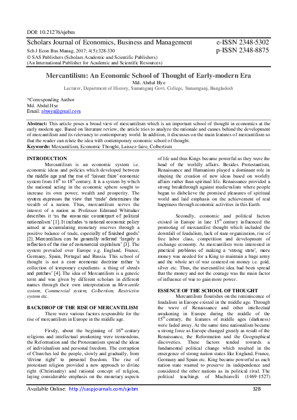 Pdf Mercantilism An Economic School Of Thought Of Early Modern Era Md A Hye Academia Edu